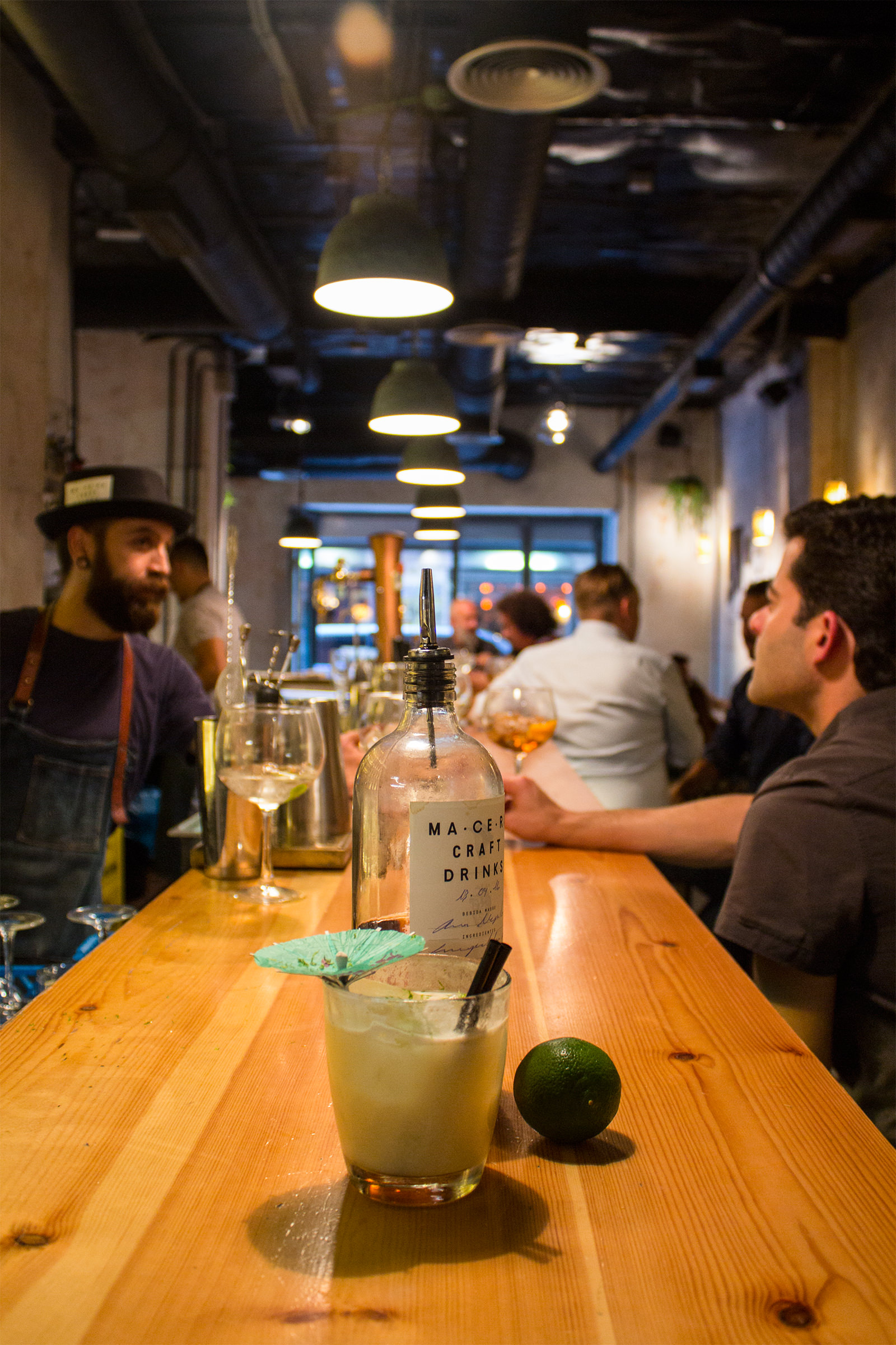 Hablando con él (yo y cualquiera que se le acerque, porque le encanta transmitir su pasión) me contó que acabó harto de trabajar para las grandes marcas y de que los buenos cócteles sólo se los pudieran permitir unos pocos privilegiados. Así que se tomó un año sabático para darle vueltas a su idea y así nació Macera.