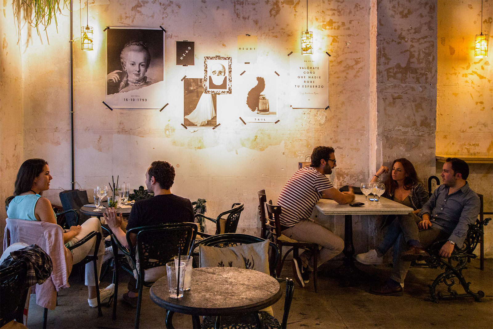 El local tiene un rollo industrial muy chulo donde puedes hacer lo que quieras. Que te quieres repanchingar en una silla y ver pasar la tarde, lo haces. Que quieres acodarte en la barra y tomarte una copa sumido en tus pensamientos, también. Aquí hay libertad absoluta. Por poder, puedes hasta tomarte un sándwich o beber un café, porque no siempre tienes el cuerpo para copazos, pero sí para pasar un buen rato.