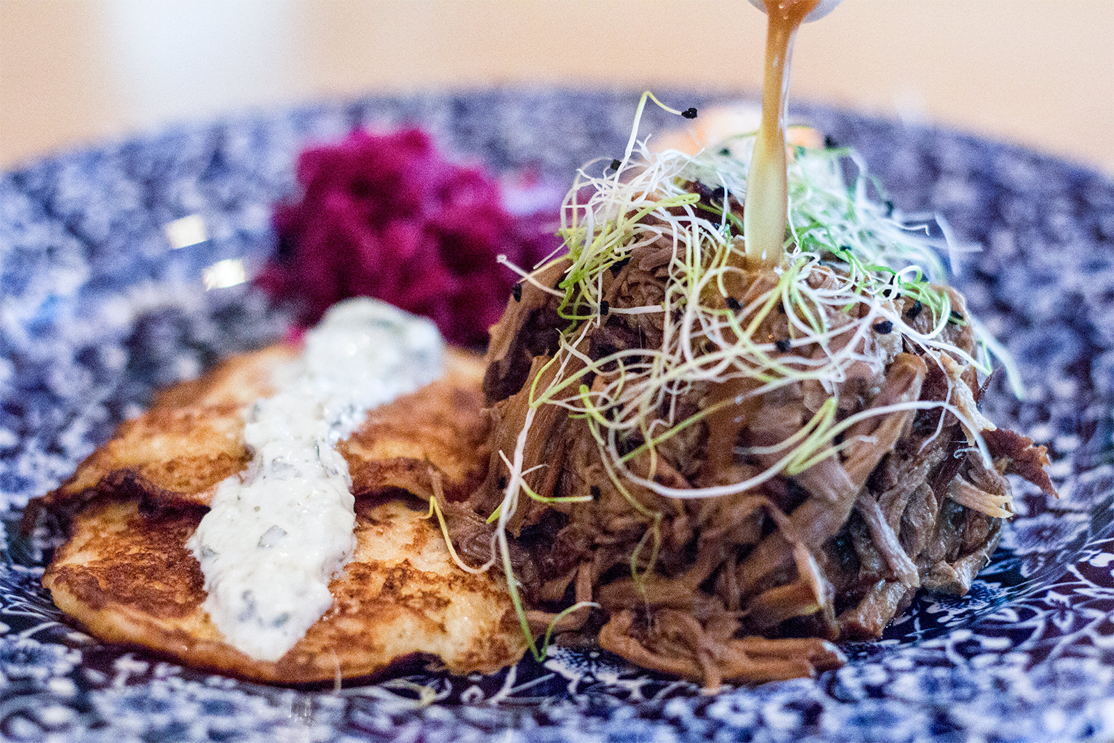 Con estos embutidos, más jugosos que los españoles, pedí también el plato principal: Meloso de buey. Es carne de costilla deshilachada asada al horno durante horas; así que sí, está muy rica.