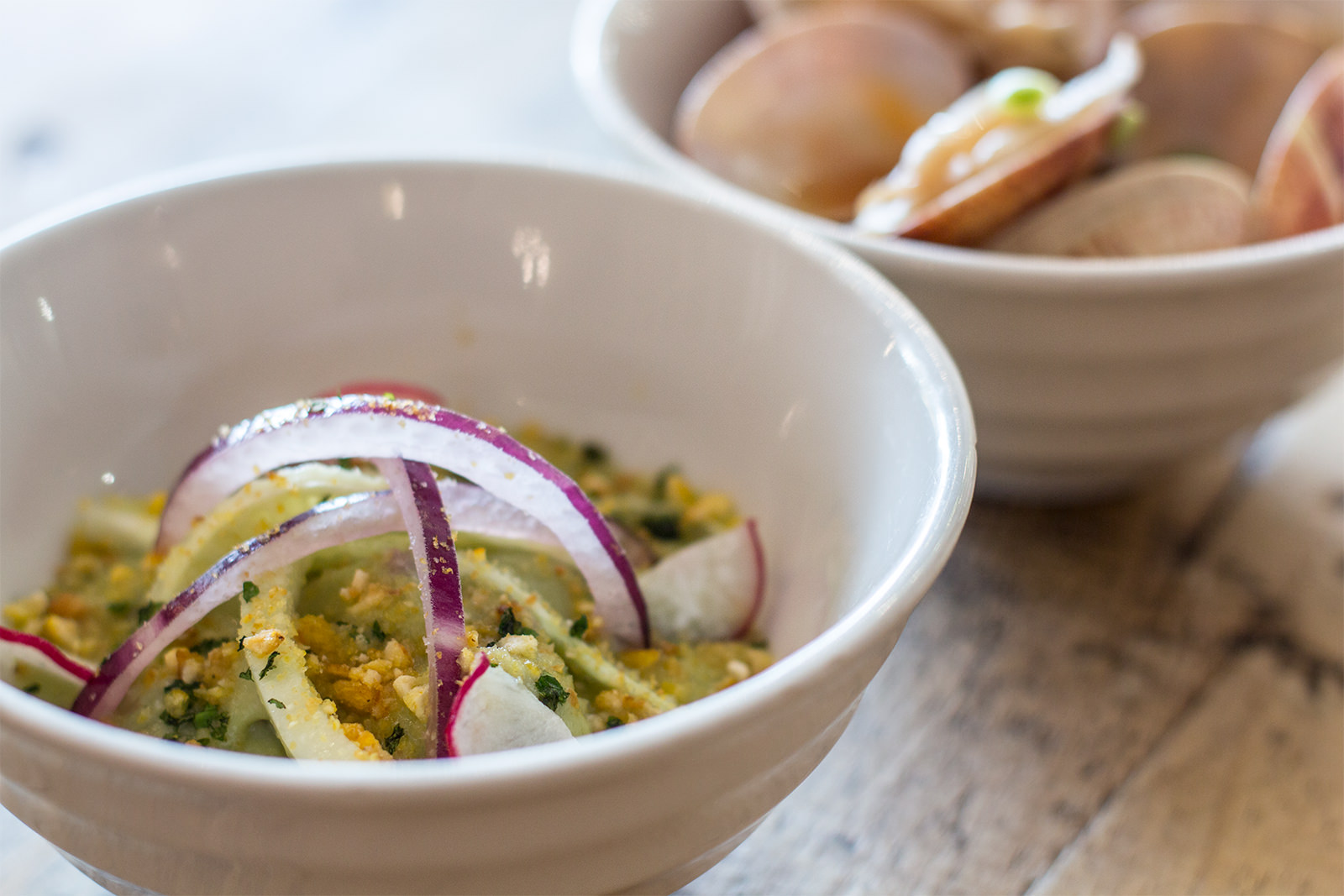Alta cocina en miniatura de un cocinero con estrella Michelin, sin listas de espera y sin que te cueste un ojo de la cara. Así es Atlántico, Casa de Petiscos, la oportunidad de probar tapas de productos gallegos el toque creativo de Pepe Solla, sentado en la barra con un buen Ribeiro.