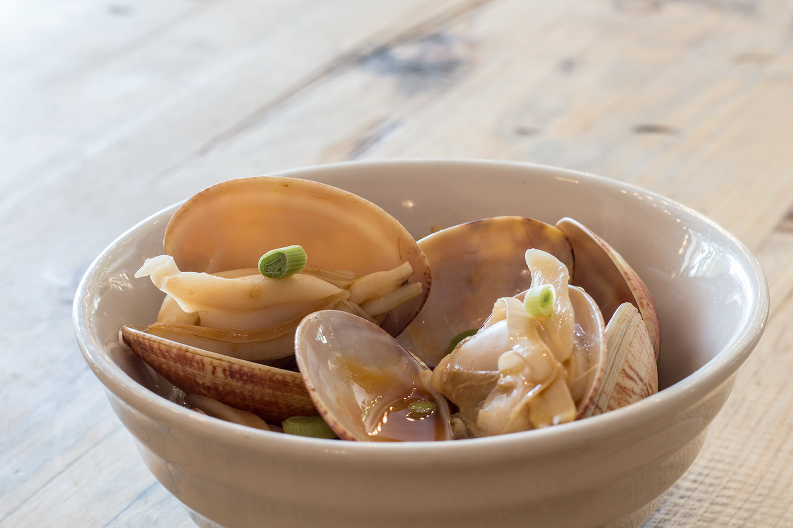 Dejé a un lado sus bocatas de calamares y de raxo con pimientos, quería probar unos cuantos platos de su carta que me llamaron mucho la atención. Empecé con unas Almejas en ramen, fresquísimas y con una salsa un poquito picante. Tienen unos poquitos fideos también en el poco espacio que dejan las almejas, y están deliciosas.