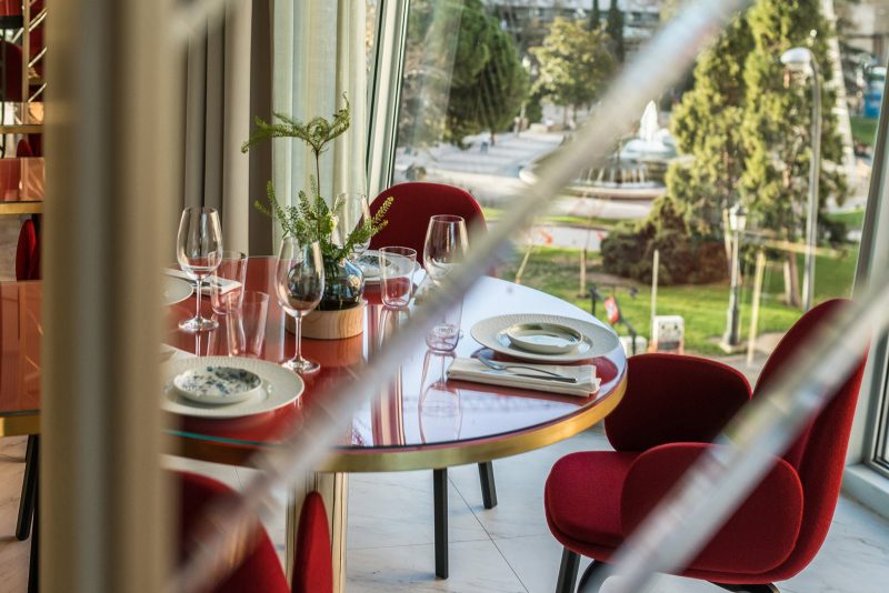 Imagino que no te sorprende, ¿verdad? En esta época en la que la decoración de los locales es uniforme, el interiorismo de Somos es reconocible al 100%. Tiene unos ventanales espectaculares a la Plaza de España, y gracias al juego de espejos ideado por Jaime Hayón, la luz se multiplica. El lacado rojo de las mesas y el tapizado rojo de las butacas a juego es todo el toque de color que hay. Cuando reserves, pide una de las mesas cerca de los ventanales y disfruta de las vistas. ¿Y de comer? Me gustó mucho cuando fui hace un tiempo, pero dicen que con el nuevo cambio de carta se han superado.