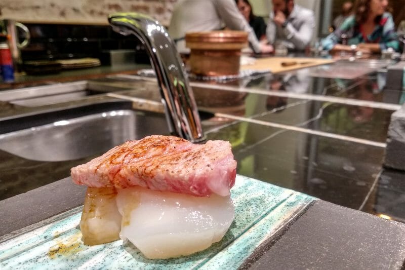 Aunque es muy difícil elegir, yo me quedaría con el «Nigiri de caviar», que es una auténtica exquisitez. Mi otro plato top es el «Nigiri de ventresca y vieira», cuya mezcla de carnes de pescado y marisco es inigualable.